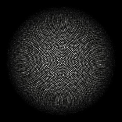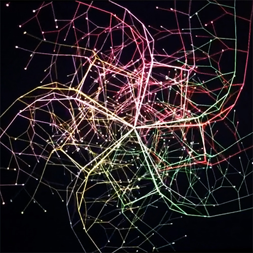 The auditory and visual components of the installation are generated in real time by algorithmic agents inspired by fractal geometry.